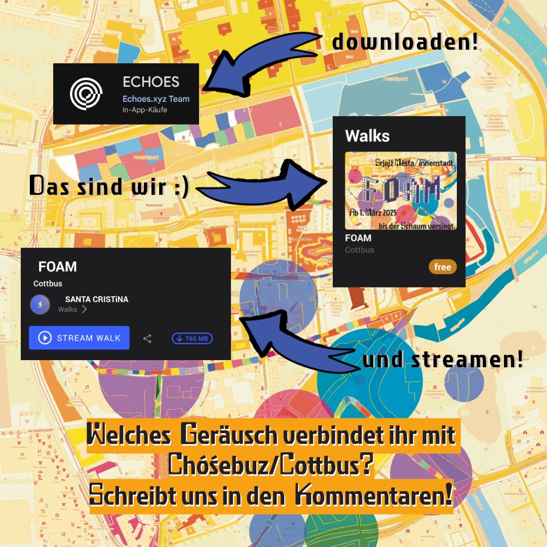 Seit März 2025 findet ihr in der Innenstadt Cottbus unseren Audiowalk FOAM.